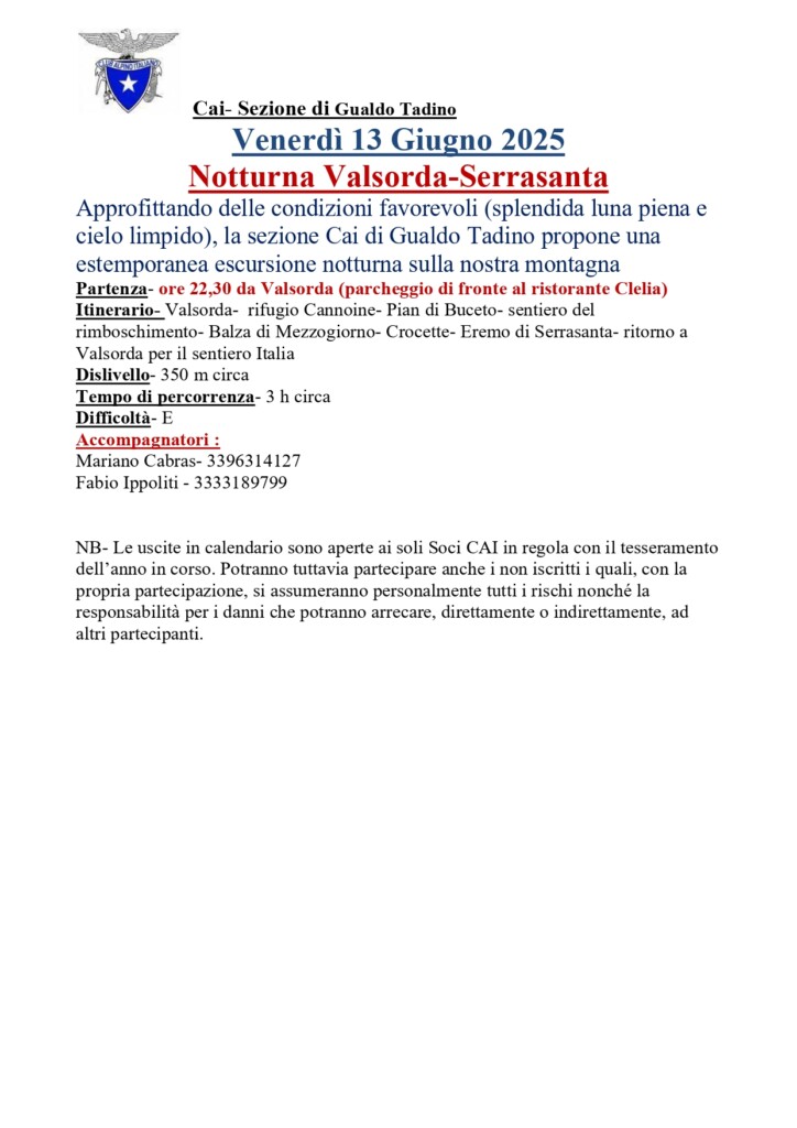Notturna Valsorda – Serrasanta – 13/06/2025